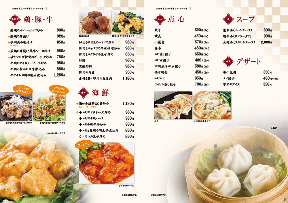 また鳳龍亭の「鳳」の字と美鳳(メニュー制作工房の運営会社)さんの「鳳」の字が同じ、ということで縁があるのではないかと思い、お願いすることにしました。