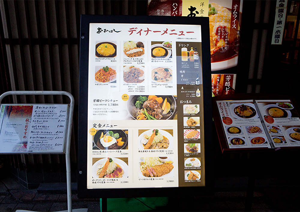 今まではお店の前で考えた後、立ち去ってしまった方が多かったのですが、これを設置してから多くの方が立ち止まってメニューを見るようになり、その半分以上の方がそのまま来店されるようになりました。