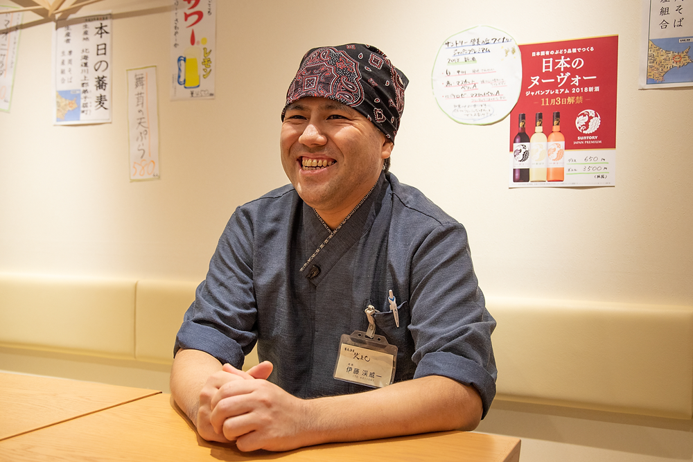 無料券、グランドメニュー、ランチメニューから始まり、A看板、店頭用スクリーンバナー、ショップカード、箸袋、店内メニュー札と制作させていただきました。その際にお世話になった伊藤店長様にお話を伺いました。