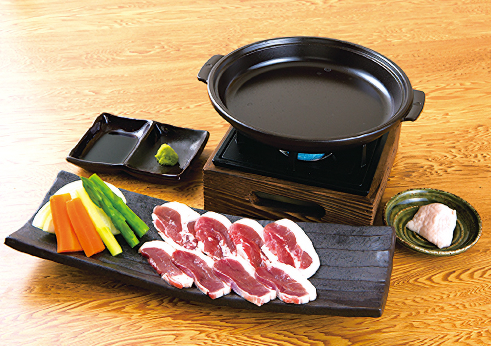 ▲人気メニュー「合鴨の相盛り卓上陶板焼」