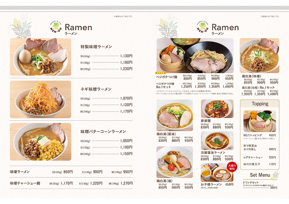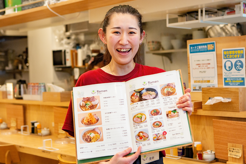 その姉妹店として2021年12月にオープンしたのが、Noodles & Cafe MEN-OH様です。今回、当社はグランドメニューとA看板の制作をさせていただきました。その際にお世話になった店長の吉田様にお話を伺いました。