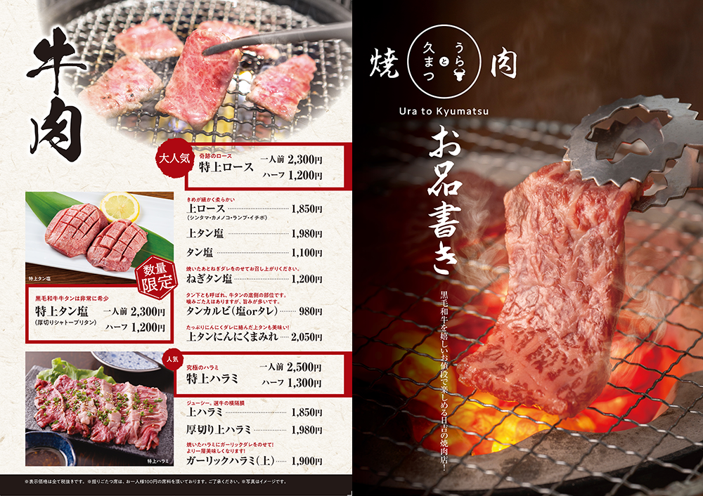 メニューデザインを一新するにあたり、肉のメニューや野菜などの品目も増やしました。それらを分かりやすいページ構成にしていただきました。