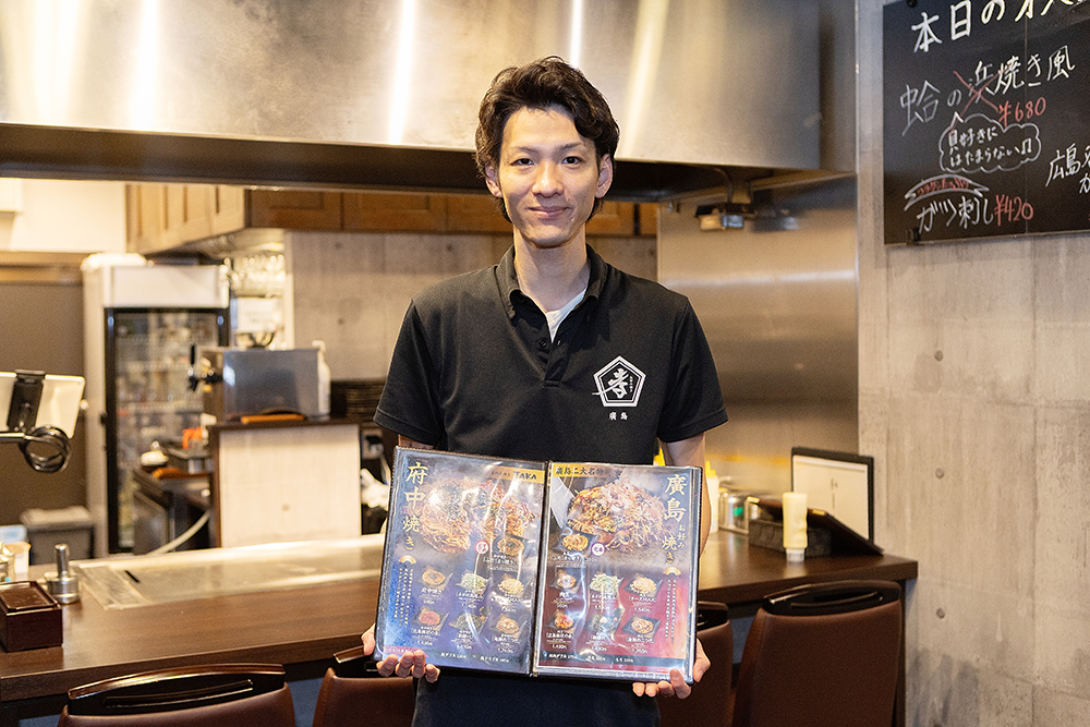 お店は「広島焼き」と「府中焼き」という少し珍しい焼き方を提供しています。
