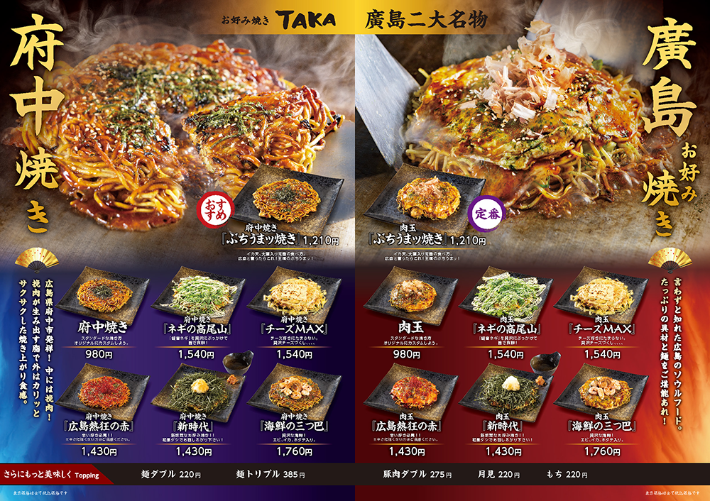 特に「府中焼き」は東京の府中をイメージされる方が多いですが、広島県府中市の焼き方です。
